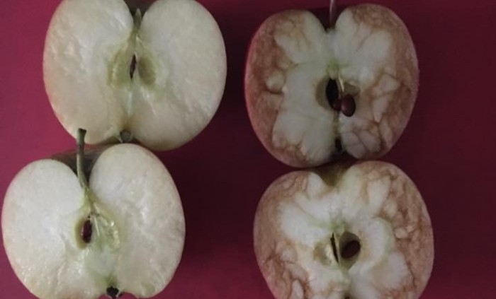 Tras partir las manzanas a la mitad los alumnos quedaron sorprendidos al descubrir un impactante cambio en la fruta. Mientras la que fue halagada lucía saludable y apetecible, la segunda tenía un aspecto poco sano y “machucado”.