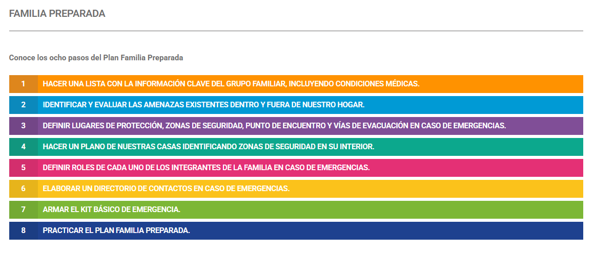 En ese contexto, el plan entrega ocho pasos concretos para prepararse ante emergencias.