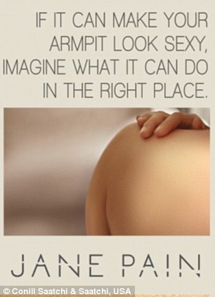 Pero para sacar de dudas a quienes ven la imagen, ésta se complementa con otra más pequeña ubicada al costado inferior derecho, que dice: “Si podemos hacer que tu axila se vea sexy, imagina lo que podemos hacer con el lugar correcto”.