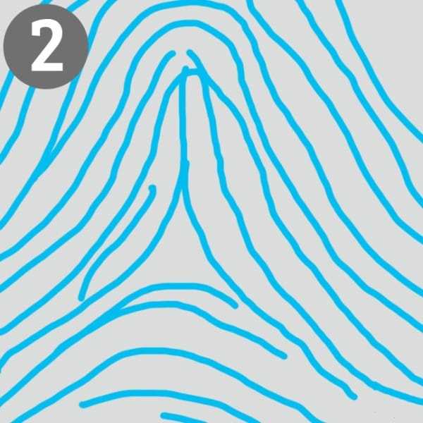 Lo primero que debes hacer es ver tu mano derecha con los dedos extendidos para luego observar cada una de tus huellas digitales. Ahora elige la que mejor se vea y compárala con las que te mostraremos a continuación. ¿Cuál de los modelos se adapta mejor a tus huellas?