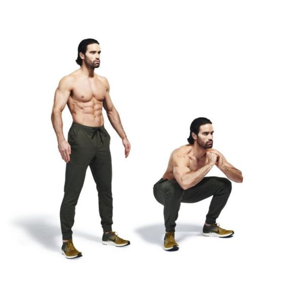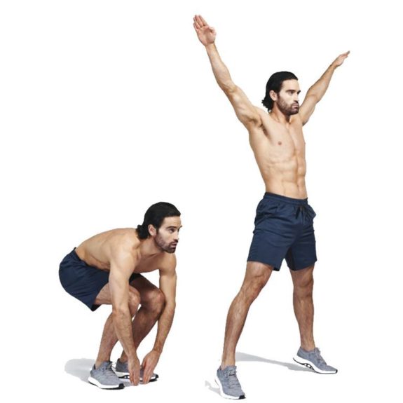 2-Sentadillas con salto: se ven fáciles, pero luego de 10 segundos comienza a pesar el cuerpo. La idea es mantenerlo por 30 segundos y descansar 10. Ojo, procura tener la espalda recta y que sea una sentadilla profunda.