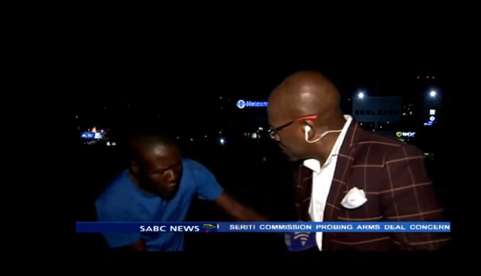 Un reportero se disponía a realizar un despacho sobre la llegada del presidente de Zambia, Edgar Lungu, a un hospital de Johannesburgo, cuando fue víctima de un “inusual” hecho.