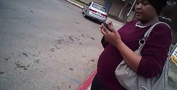 Si bien la Unión Estadounidense por las Libertades Civiles afirma que es legal negarse a no mostrar la identificación en California, si no existe un crimen evidente, los oficiales se enojan y empujan a la mujer contra una reja para esposarla llevando sus manos tras la espalda, algo que tampoco debería hacerse con una mujer con tal estado de gestación.