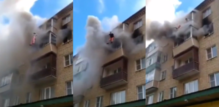 Una familia rusa en la desesperación de ver cómo su departamento era consumido por las llamas, decidieron lanzarse por la ventana de quinto piso del edificio.
