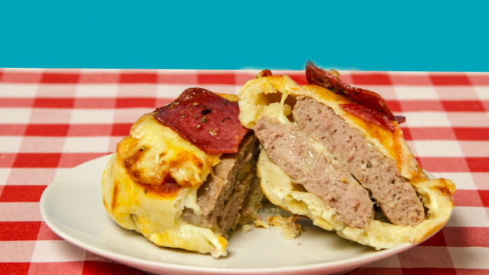 Todos tenemos un amigo o amiga al que le cuesta muchísimo decidir qué comer. “¿Pizzas? ¿Sushi? ¿Quizás una chorrillana?”, pregunta uno y por respuesta sólo recibe un largo silencio. Para todos esos indecisos, surge una monstruosa delicia culinaria: se trata de la Pizza Hamburguesa Empanada.