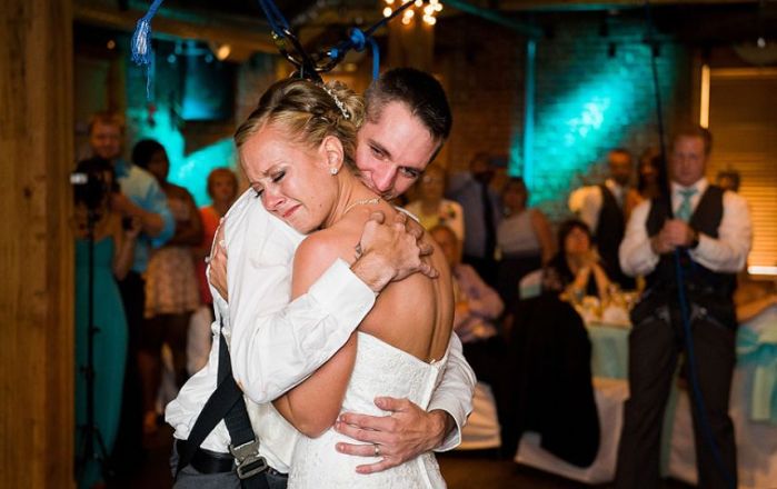 Novio parapléjico se levanta de su silla de ruedas para bailar con su esposa