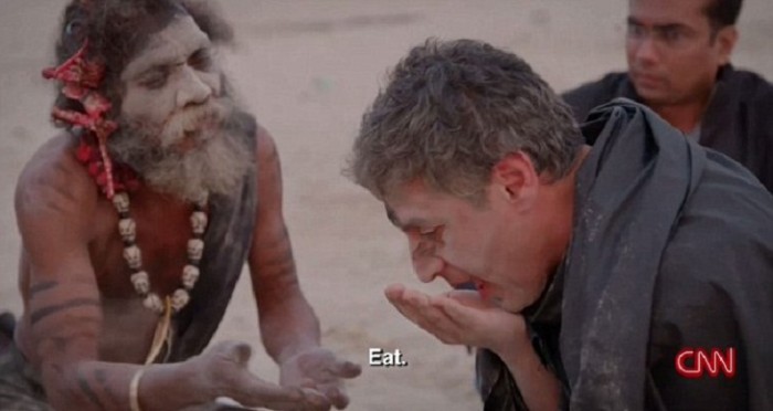 Pronto vendría una parte casi tan aterradora y repugnante, luego que el Aghori obligara al reportero a comer sesos humanos. Reza debió comer parte del cerebro de un cadáver y, junto con ello, lo obligaron a beber alcohol de un cráneo humano.
