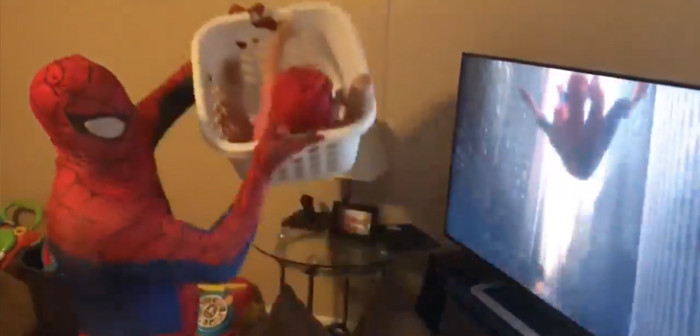 Como un verdadero superhéroe: video de papá que juega con su hijo a volar como Spiderman se viraliza