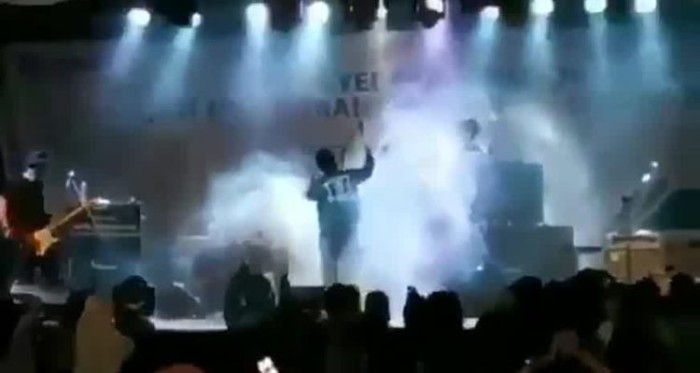 En las imágenes se ven a los integrantes de la banda saliendo despedidos del escenario por el agua, que llegó posteriormente hasta el público, instante en que se corta la grabación sin saber qué ocurrió con quienes estaban ahí en ese momento.