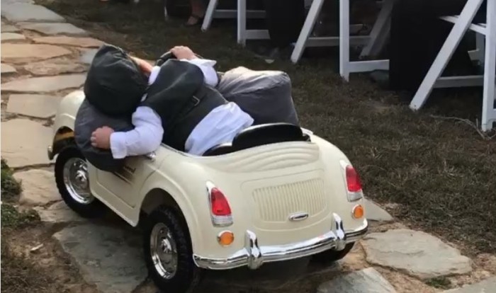 Todo estaba preparado para que el hijo de los novios llevara en su auto de juguete las argollas hasta el altar, pero algo inesperado ocurrió en el trayecto.